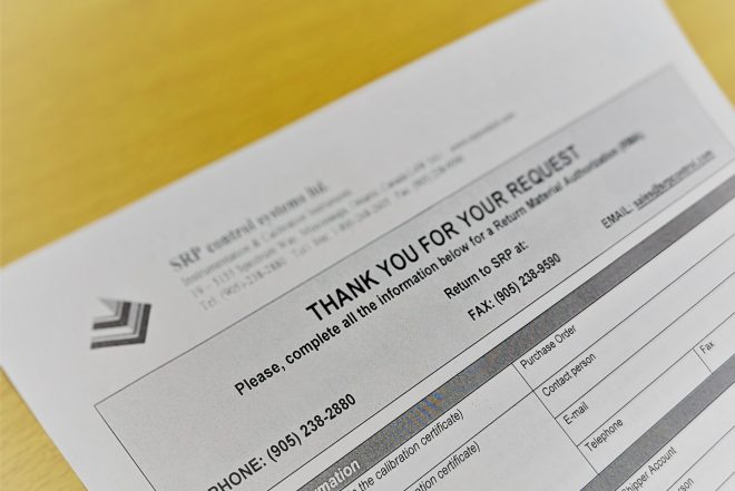 If you’re looking to have equipment either calibrated or repaired, the SRP repair process begins by submitting a request for a Return Material Authorization (RMA) number through our website or by contacting us. Then you can ship us your instrument. Once we receive it, we’ll inspect the instrument and then either calibrate or repair the equipment for you, based on your needs.